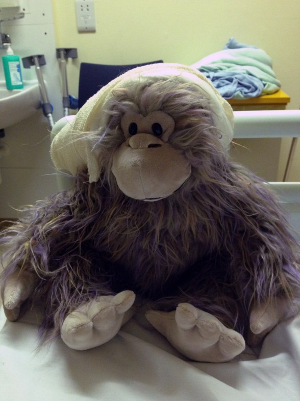 I had a special delivery today in the form of a cuddly monkey. The permanent staff at the headquarters of Cambridgeshire Army Cadet Force had a whip round for me and one of them knew I had a soft spot for monkeys. He is lovely and fury and an unusual colour, thank you very much to all of you. They call the stump dressing a hat which is what it looks like, they asked if I wanted the one that came off today to which I obviously said no, I then jokingly said stick it on the Monkey so they did. They said he looked like Bob Marley with that on his head, hmmmm he doesn’t have a name yet, suggestions anyone?