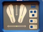 Apart from the doing step and ramp I was put on a machine that had two pads on the floor, one for each foot, and a monitor. When I had used the Wii Fit before I became an amputee it always showed my balance was not central but more on my heels. When I have been doing some of the stepping exercises they noticed that I seemed to have my weigh back and my toes lifted at the front a little. This machine shows you your balance forward and backwards on each foot and if there is more weight through the left or right leg. If you are in perfect balance then there is one green light on each foot and one in the middle of the left/right bar. There is then two or three amber lights and then three or four red ones. My balance didn’t seem that bad really but when I tried to get just the three green lights on I was quite surprised how that felt. I was asked to rock forwards with the weight and then back again so I could get a feel of how my weight/posture/balance was doing. I think it is a very worth while piece of kit to use as it really does make you think and feel about how you are standing with the prosthesis on which is actually more handy than you may think.
