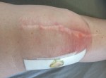 When the Consultant came in I reminded him about the Psychiatrist wanting to liaise with me, because they had altered this appointment Friday I didn’t know if she would be aware of that. The Consultant went on to tell me the plan that I already knew inside out. Again I knew more than him as I explained that the Dr who admitted me in A&E was brilliant, had liaised with the Nuffield and that Hinchingbrooke would get in contact again Monday morning. He checked the computer and said that there was nothing on the system to say that, I assured him that was the plan. He took my notes and left the room, after a while he he came back and said he had found the relevant information in my notes. I hadn’t gone to the appointment in my own wheelchair as I can’t bend my knee very much, so we used a Hospital one with the leg board. He told me there was a lot of fluid in the knee and started feeling the inside of the knee with the back of his hand, he didn’t feel the top or outside where it was red.